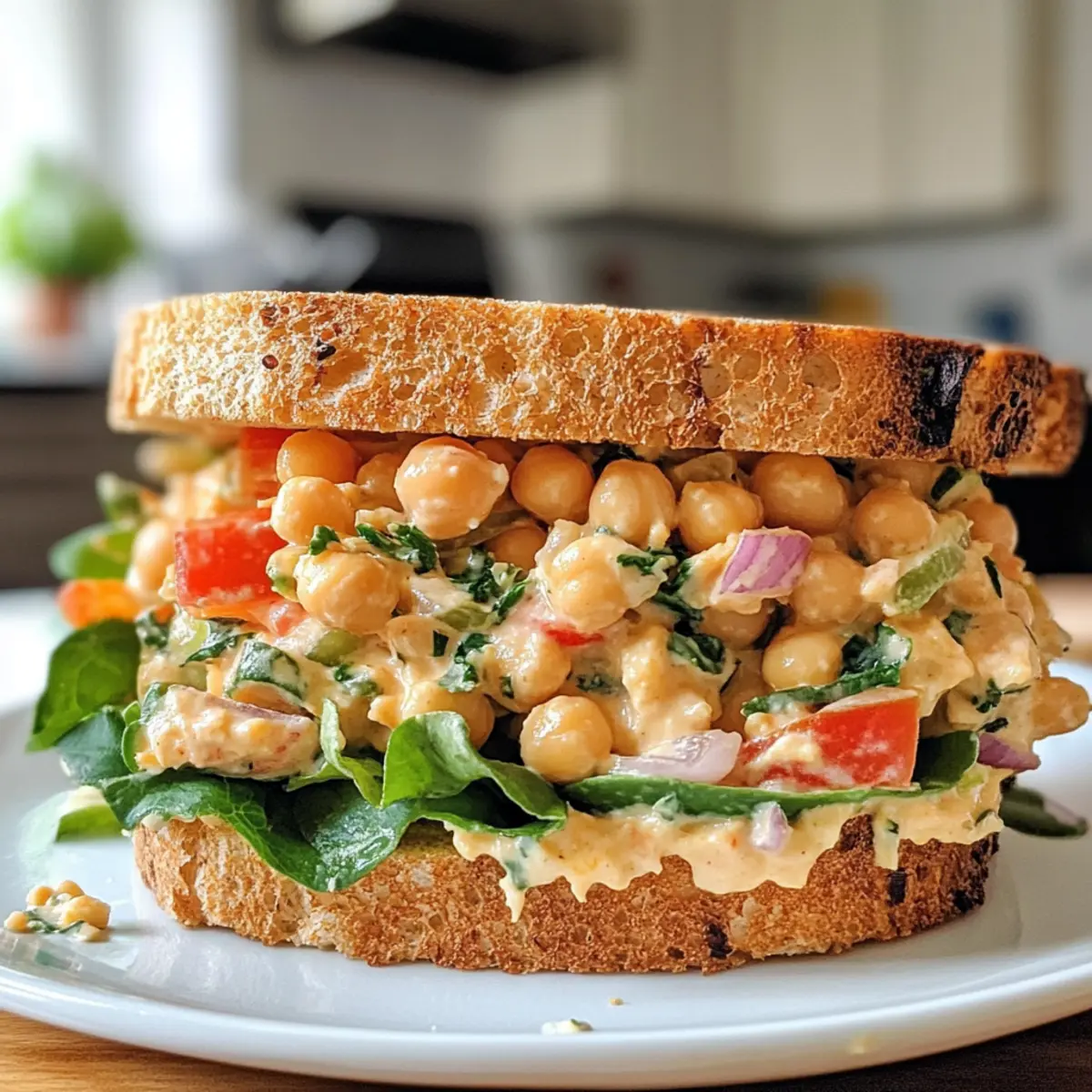 There’s something incredibly satisfying about the crunch of fresh vegetables mixed with the creaminess of chickpeas, especially when it’s all piled between slices of soft bread. When a friend introduced me to this delightful creamy chickpea salad sandwich, I was instantly captivated. It combines all the textures and flavors I crave in a quick meal while being entirely plant-based. Perfect for those busy weekdays or casual weekend get-togethers, this recipe is both nourishing and effortlessly delicious. As I prepared it, the vibrant colors of the bell peppers and fresh herbs brought a burst of joy to my kitchen, transforming it into a space filled with warmth and comfort. If you’re ready to elevate your lunch game and break away from the mundane fast-food routine, I invite you to join me in creating this fulfilling sandwich that’s sure to impress your taste buds!