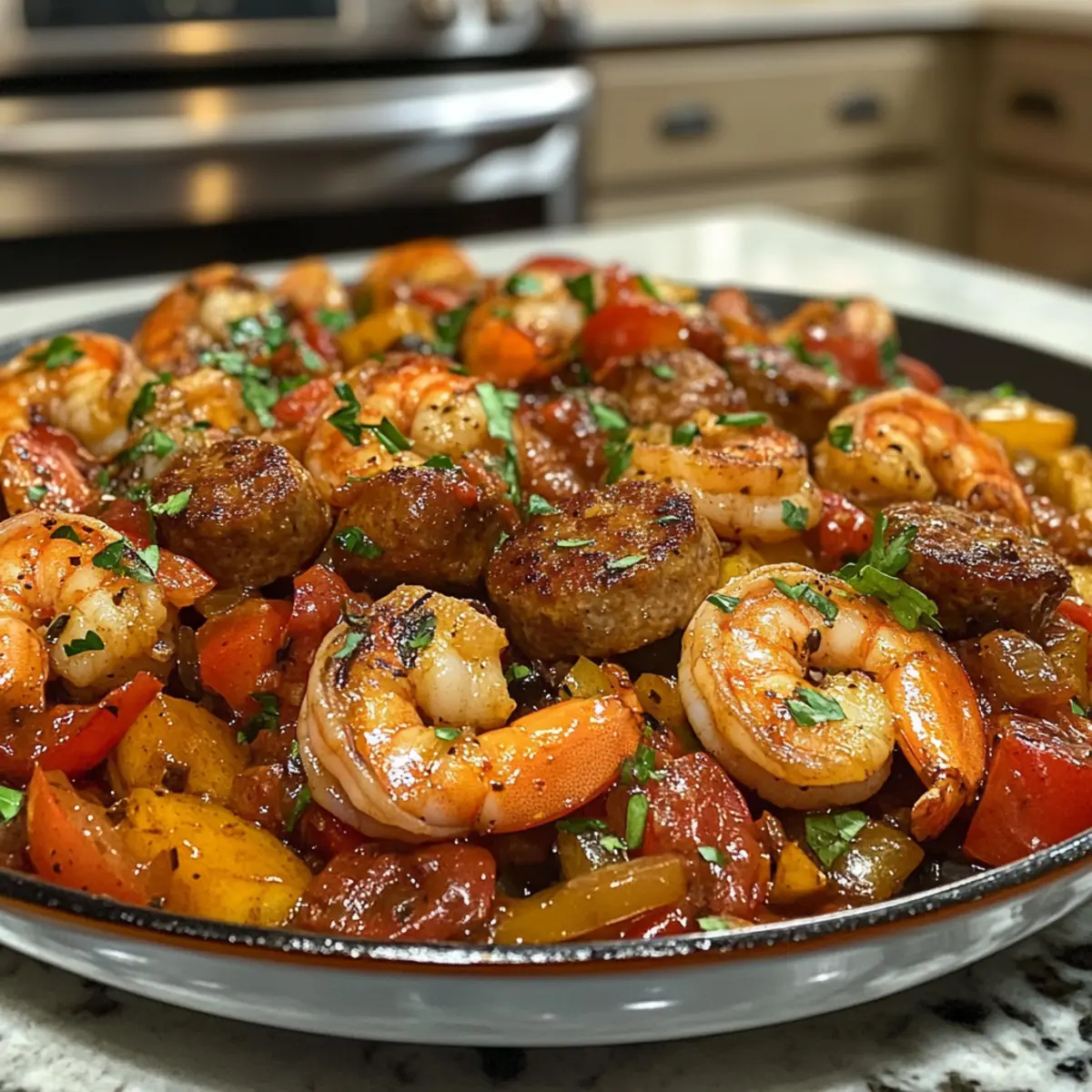 Bursting Flavors: The harmonious blend of smoky sausage, tender shrimp, and fresh vegetables delivers a taste that excites every bite.